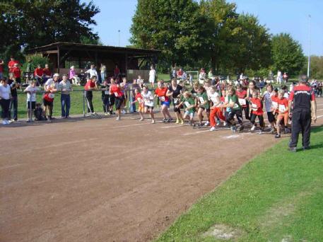 Die angereisten Allwetter-Leichtathleten der Vereine Wettesingen, Oberlistingen, Naumburg, Ippinghausen und die im rot/schwarzen Trikot startenden Dörnberger gingen trotzt Regen an die Wettkampfstätten.